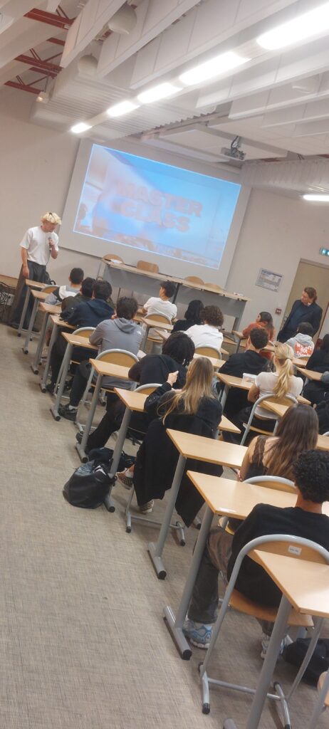 Quand la Théorie rencontre l’Action ! Le vendredi 17 octobre, les élèves de Première et Terminale STMG ont bénéficié d’une intervention inspirante de Rudolf Lauze, diplômé de cette filière en 2022. L’ancien élève est venu partager son parcours post-bac et son expérience en tant que jeune entrepreneur. L’intérêt majeur de son témoignage était la présentation de la création de sa propre entreprise dans le secteur de l’événementiel, illustrant l’application concrète des notions apprises en STMG. Allant au-delà de la conférence, Rudolf Lauze a mis les lycéens en situation active. Il leur a proposé une activité de groupes stimulante : « Trouver une idée pour créer votre entreprise ». Cette mise en pratique a permis aux élèves d’appliquer immédiatement des concepts théoriques tout en libérant leur esprit créatif. Les échanges dynamiques et la présentation des projets ont ainsi renforcé leur compréhension de l’entrepreneuriat comme une voie accessible après le bac. L’équipe pédagogique remercie chaleureusement Rudolf Lauze pour son énergie et son partage d’expérience, ainsi que les élèves pour leur participation active et l’équipe enseignante pour l’organisation de ce moment fort d’orientation.