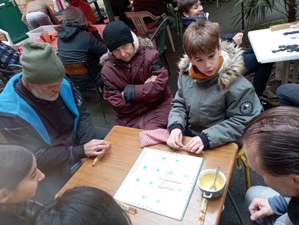 Les samedis 7 et 14 décembre, une dizaine d’élèves d’Emilie de Rodat a rejoint l’association Oasis sous le palmier de la cour du presbytère de saint Nicolas pour partager un moment convivial avec des personnes isolées ou de la rue : service du petit-déjeuner, jeu de scrabble, puissance 4 ou domino, discussions, vaisselle et même trompette, chacun a trouvé le moyen de déployer ses talents.