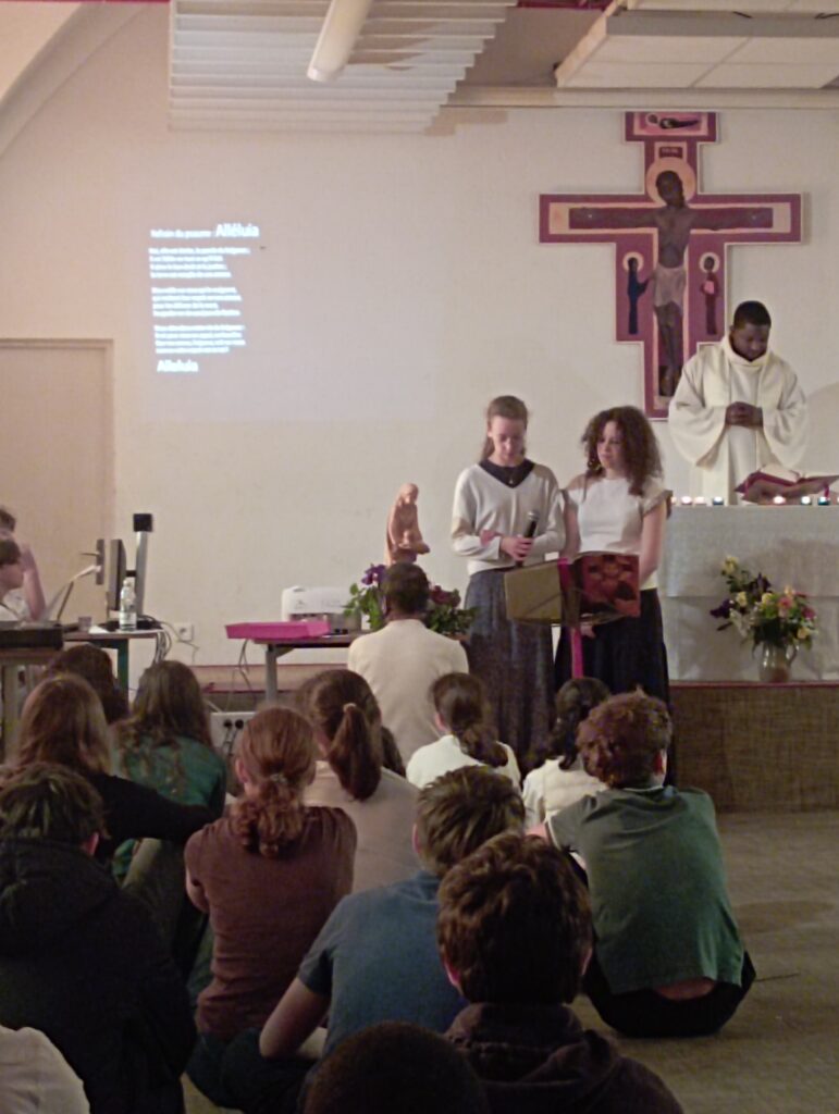 Au retour du week-end pascal, alors que les singularités étaient à l’honneur, le Père Vital a célébré la messe à 13h, pour les élèves et adultes volontaires, présentant la figure de Marie-Madeleine comme un modèle de singularité chrétienne : elle est envoyée annoncer aux apôtres que le Christ est ressuscité.