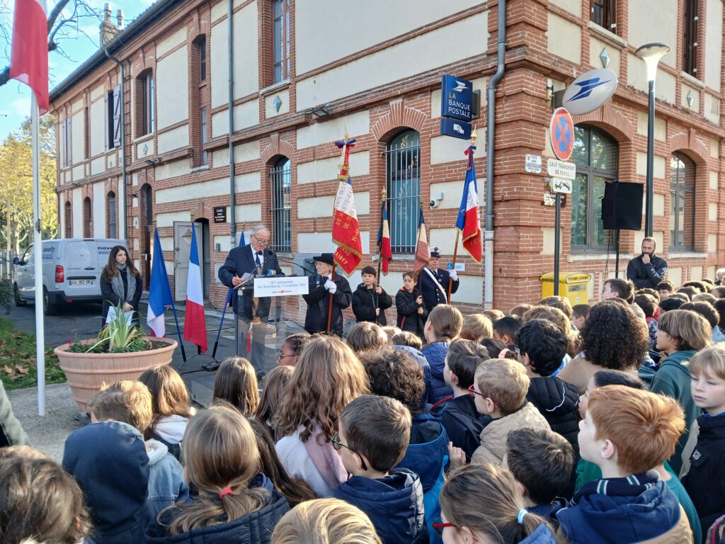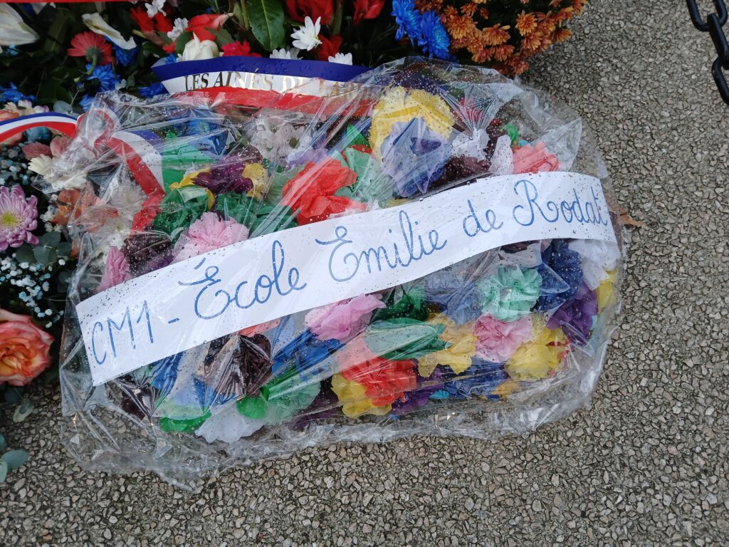 Lundi 17 novembre, les deux classes de cm1 ont été invitées par notre maire de quartier M Alvès à la 107° commémoration de l’Armistice du 11 novembre. Une première pour eux. Ils ont pris leur participation très au sérieux en préparant une magnifique gerbe de fleurs en papier, en apprenant deux couplets de la Marseillaise et en écoutant attentivement les discours et lectures. Un moment de partage fort et solennel qui restera certainement gravé longtemps dans leur mémoire.